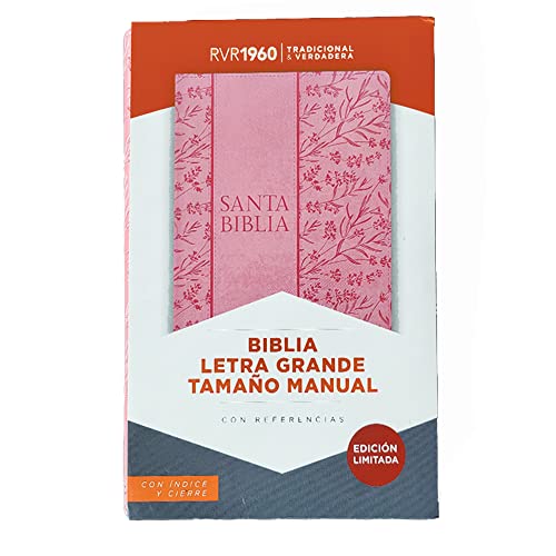 Santa Biblia Reina Valera 1960 Letra Grande tamano manual con Cierre Indice color Rosado Floral/ Spanish Holy Bible RVR 1960. Handy Size, Large Print, Zipper, Pink